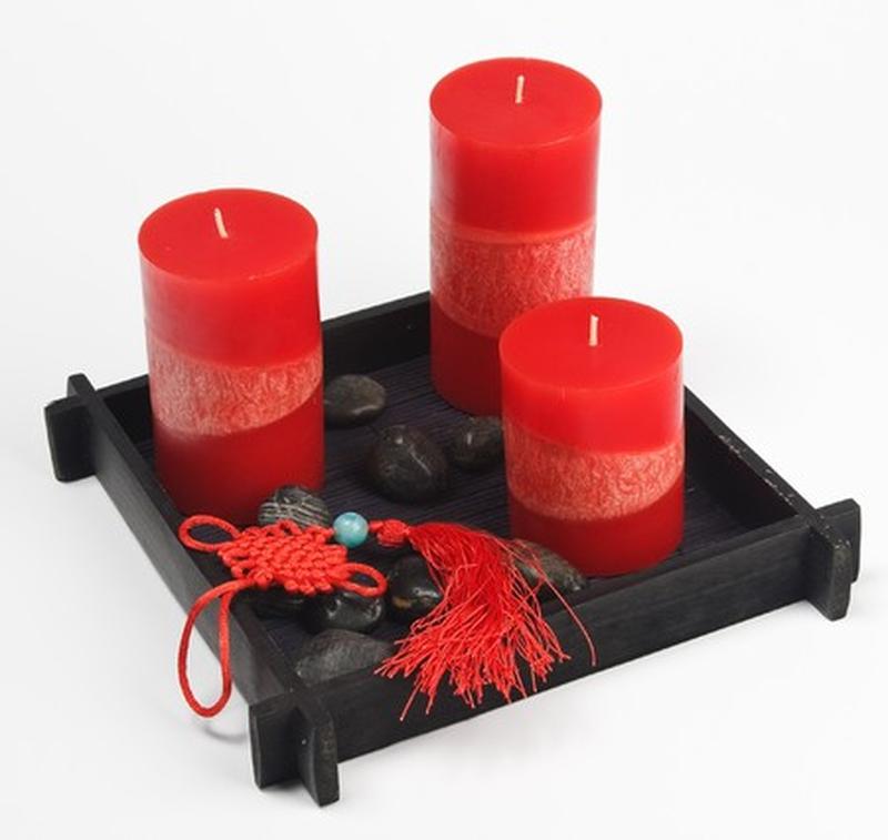 Подарочный набор в китайском стиле- красные интерьерные свечи с галькой на подставке+подвес Высота свечей 7, 10, 12 см, диаметр 6 см Подставка квадрат 18х18 см