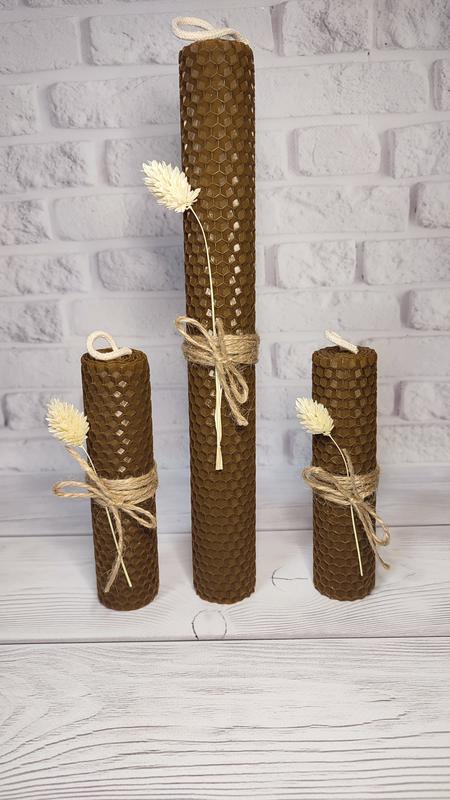 Наборы свечей из натурального воща – полезный и очень милый подарок, который покажет вашу заботу) Свечи из медовой волости: 260 ммх 30мм/-1 шт – шт. 130 мм×30 мм-2шт Подарочный набор свечей ручной работы всегда будет отличным презентом для близких, друзей, коллег, партнеров на Новый год, День Влюбленные, 8 Березня или любой праздник. Каждый набор имеет подарочную упаковку