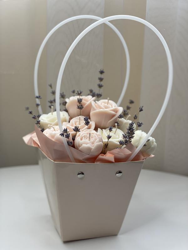🎁Подарок, который точно удивит🎁 Подарите, то что останется надолго – свечи в виде цветов. Они наполнят дом уютом и теплом 🕯️Ручная работа из натурального соевого воска 🍀В букете используется лаванда, которая приятно пахнет 🎨Можно изменить цвета (розовый, персиковый, капучино, голубой) или смешать несколько цветов 🌸Также можно добавить сертифицированные аромамасла 💐Букет на фото из 11 цветов Цена указана за букет из 11 цветов без аромамасла❤️