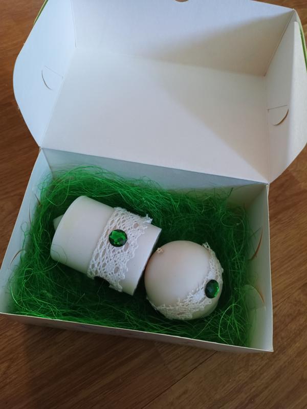 Набір свічок ручної роботи із запахом ванілі перевага свічок-використовую харчовий парафін,який не шкідливий для для середовища висота свічки -8 см діаметр кульки20 см вага -327 грам🧨за рахунок великої ваги,свічки будуть вас довго радувати своїм вогником та запахом