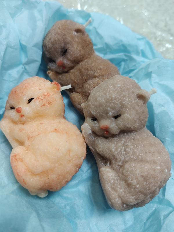 свечи как комплимент- маленькие котята длинна 7 см , высота 4 воск пальмовый