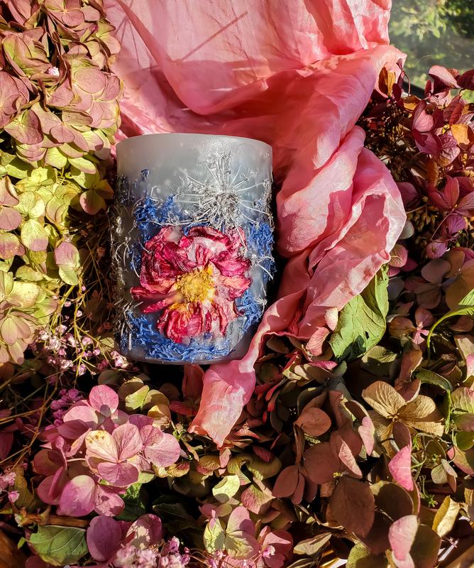 Ботанічна свічка виготовлена з гідролізованого парафіну, що застосовується в харчовій промисловості та є безпечним для здоров’я оточуючих. Кожна свічка унікальна, адже виконана вручну. Вона складається із внутрішньої частини, яка прогорає вглиб(тонельно), не зачіпаючи зовнішні стінки із сухоцвітами. Завдяки цьому створюється ефект нічника – сухоцвіти м'яко підсвічуються, забезпечуючи затишне освітлення. Після прогорання внутрішньої свічки,зовнішня конструкція зберігає форму і може використовуватися як підсвічник. Вага-362 гр. Діаметр-7 см. Висота-9.5 см. Орієнтовний час горіння - 45 год.