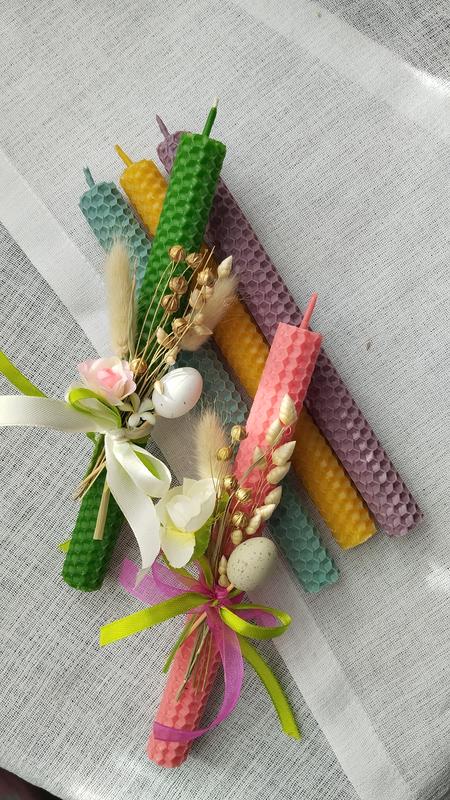 Свечи из натуральной вощи. Высота свечи 20 см. Время горения одной свечи 2, 5 часов. Насыщает комнату ароматом меда. В набор входит 5 свечей.