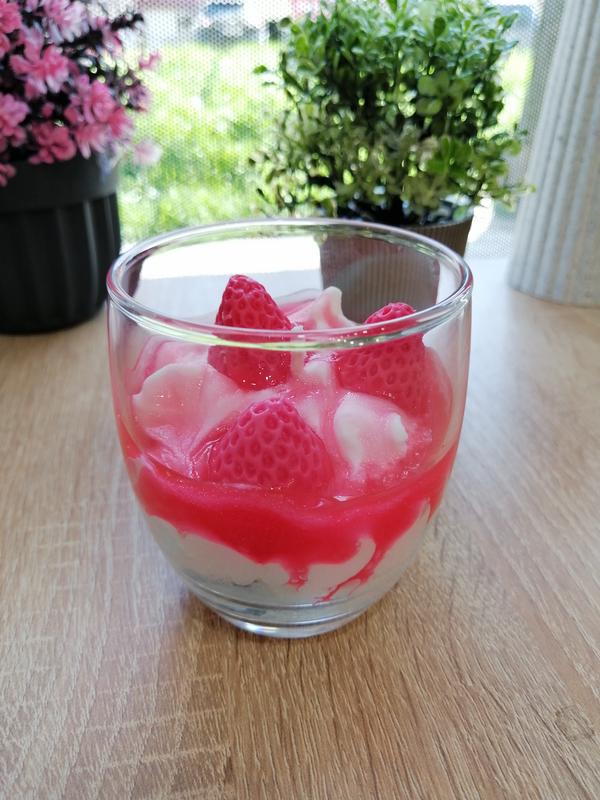 Свеча десерт клубника со сливками в стакане 150гр.