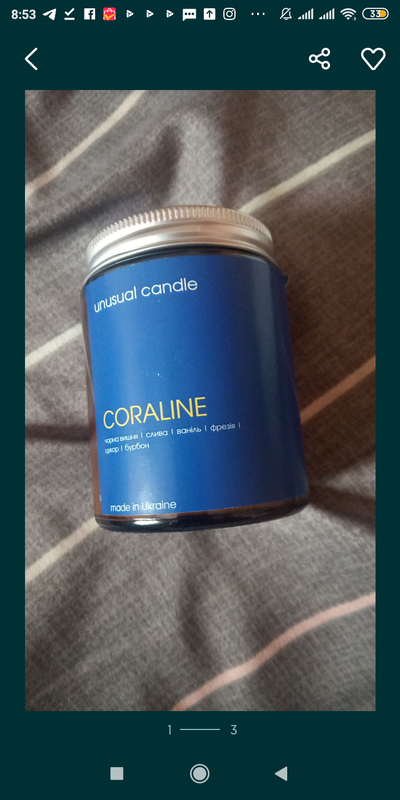 Продам ароматическую свечу Unusual Коралина. Пахнет нотками печенья, черной сливы и бурбона. Гнит хлопковый, вес 150 грамм. Отлично подойдет на подарок.