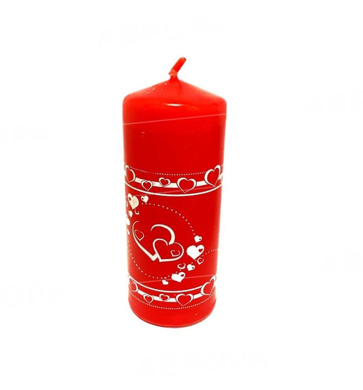 Свеча красная парафиновые с нарисованными сердечками для романтического настроения) В наличии две штуки есть.