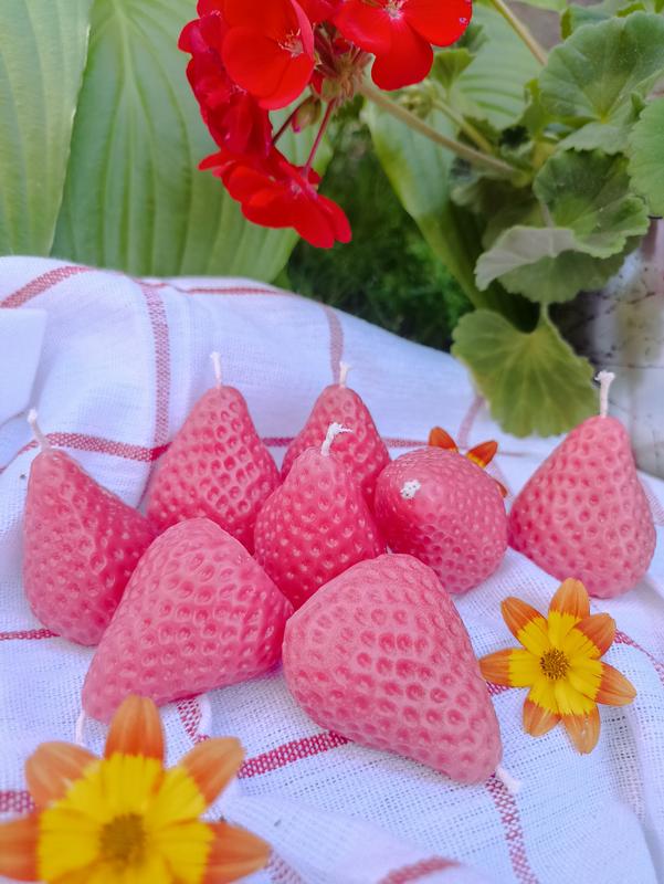 Декоративная свеча клубника. Выглядит очень реалистично.