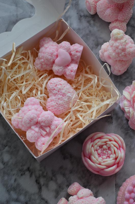 Подарочный бокс, набор свечей из соевого воска ручной работы, мишки с сердечком, оригиналь...