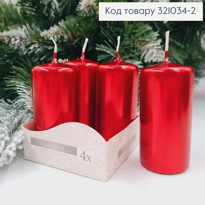 Набор красных столовых свечей металлик bispol 4 шт 40/80мм 9 часов горения, набор цилиндри...