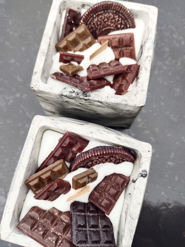 свеча в гипсовом кашпо объем 250 мл воск натуральный пальмовый аромат сладкий шоколад 🍫 фитиль деревянный с эффектом потрескивания при сгорании