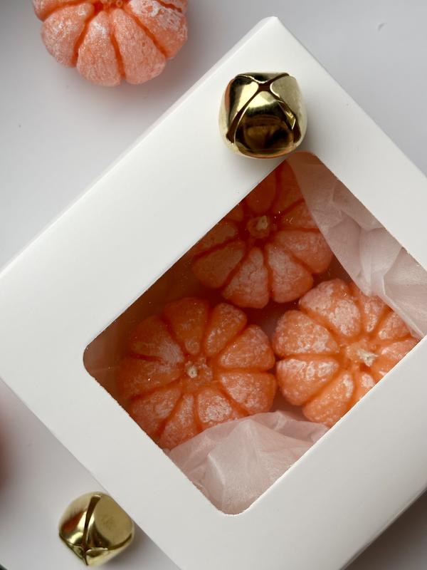 Набір із трьох свічок мандаринок Вага однієї 35 г У подарунковій коробочці Підійде для: • різдвяних боксів • сюрпризів для колег і друзів • подарунків під ялинку • декору святкового столу