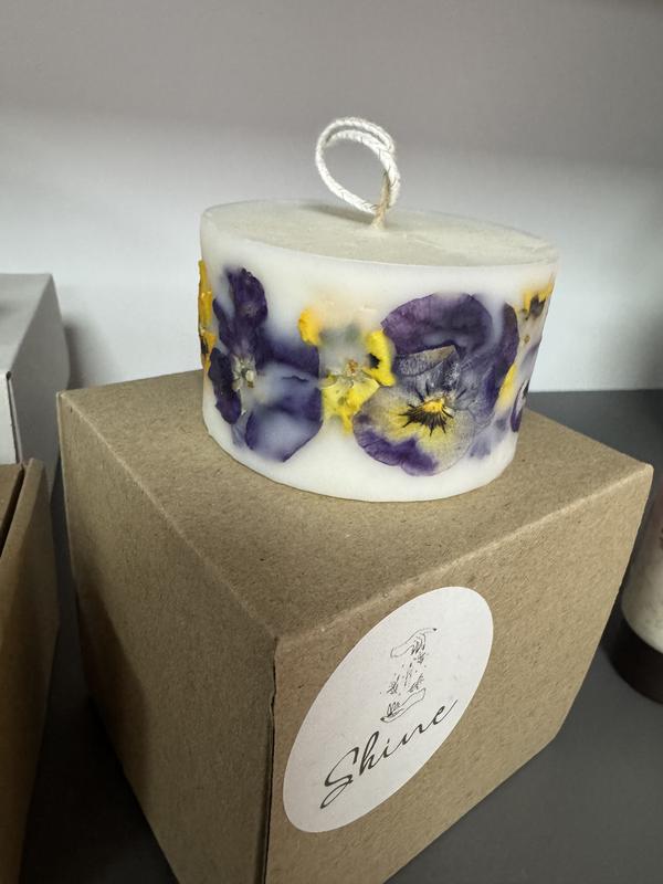 Свічка натуральна соєва і квіти братки висушені. 🌼 Якісь 🔥. Дуже гарне упакування можна на подарунок 🎁