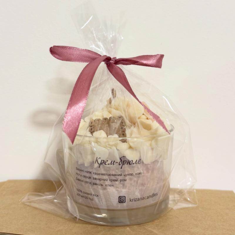 Соєва свічка-десерт «Крем-брюле». Свічка у вигляді десерту) не їстівна 😅 Склад: Американський соєвий віск, бавовняний гніт, ароматизатор Candle science “Крем-брюле». Час горіння: 20 годин