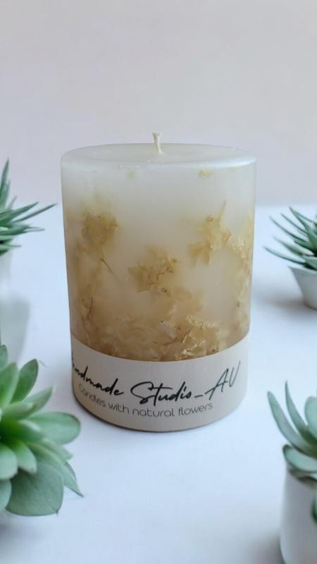 Бежевый шарм гортензии - 35 часов горение, с ароматом сандал