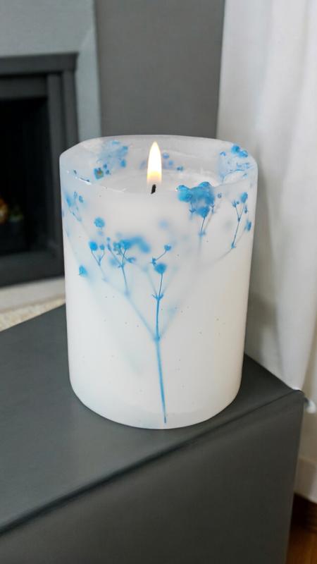 Свеча с голубыми цветами - 35 часов горения, с ароматом бабл-гам