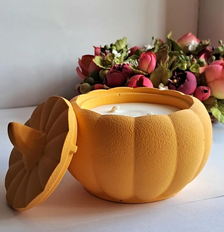 Соевая свеча желтая тыква ручная работа 9 см высота 10 ширина