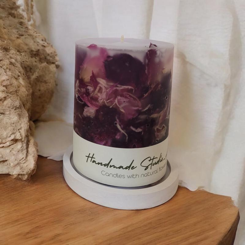 Свеча-цилиндр с пионами – 35 часов горения, с ароматом тюльпан