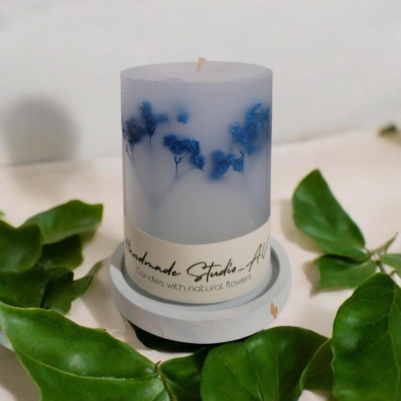 Декоративная свеча "мечта с гипсофилой" на подставке, с ароматом корица
