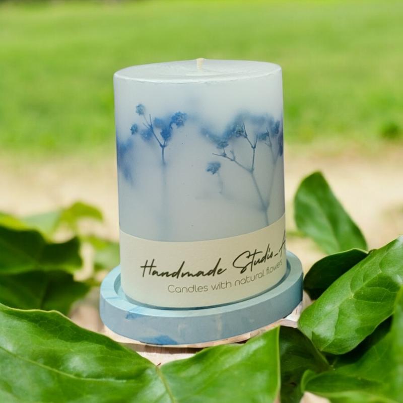 Декоративная свеча "мечта с гипсофилой" на подставке, с ароматом бергамот