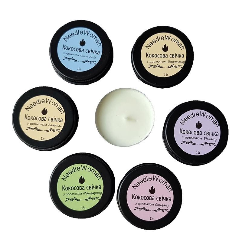 Набор ароматических свечей миниатюр NWN-113 производителя крафтовых товаров NeedleWoman. Арома свеча из кокосового воска с ароматом в баночке с крышкой. Станет отличным подарком, декором в доме, подойдет для релаксации и приятного времяпрепровождения. Кокосовый воск – это экологический продукт растительного происхождения. Не содержит токсичных, вредных веществ, парафина и продуктов нефтепереработки. Подходит для веганов. Материал: кокосовый воск. Ароматы в наборе: Сандал Калла-Лилия Лаванда Шоколад Бисквит Мандарин Время горения одной свечи при правильном использовании: 4,5 - 5 часов. В наборе: 6 свечей. Предостережение: Не оставляйте свечу без присмотра. Не оставляйте зажженную свечу возле легковоспламеняющихся вещей. Не ставьте свечу у сквозняков. Срезайте фитиль до длины 0,5 см перед зажиганием. Ставьте свечу на подставку с достаточной теплостойкостью.