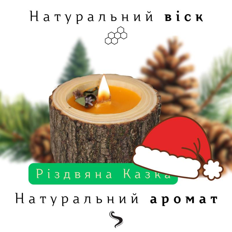 Свеча из пчелиного воска в деревянном подсвечнике "Рождественская сказка" (ручная работа) Свеча «Рождественская сказка» -- это аромат настоящего уюта и теплоты, созданный специально для тех, кто ценит атмосферу домашнего комфорта. Терпкие зимние пряности, мягкая сладость и глубокие древесные оттенки наполняют пространство ощущением праздника и спокойствия. Свеча изготовлена исключительно из натурального пчелиного воска, обогащённого прополисом, который при горении очищает воздух, нейтрализует аллергены и наполняет дом едва уловимым медово-травяным ароматом. Декор из карпатских сушениц, собранных и высушенных вручную, создаёт атмосферу натуральности, лесной свежести и гармонии. Подсвечник выполнен из цельного натурального дерева (берёза). Каждая свеча уникальна благодаря природной текстуре древесины -- это действительно ручная работа премиум-класса. Аромат «Рождественская сказка» -- это смесь уютных зимних специй, мягкости хвои и вдохновляющих цитрусовых нот. Он создаёт атмосферу праздничного тепла, способствует расслаблению и настраивает на творчество. * * * Преимущества - 100% натуральный пчелиный воск + прополис - Деревянный фитиль с ровным и мягким треском - Полностью натуральный аромат «Рождественская сказка» - Очищает воздух, поглощает аллергены - Эксклюзивный деревянный подсвечник ручной работы - Декор из карпатских трав -- каждая свеча уникальна - Долгое и чистое горение - Идеальна для интерьера, медитаций и подарков * * * Как использовать - Подожгите деревянный фитиль. - Дайте свече прогореть до плавления воска по всей площади поверхности -- так она будет гореть равномерно. - Идеальна для вечернего отдыха, ароматерапии, создания праздничной атмосферы. * * * Характеристики - Аромат: Рождественская сказка - Материал свечи: натуральный пчелиный воск, прополис - Материал подсвечника: натуральное дерево (берёза) - Фитиль: деревянный - Декор: карпатские сушеницы - Диаметр: 90 мм - Высота: 60 мм - Тип: круглая свеча в деревянном подсвечнике - Цвет: медово-золотистый