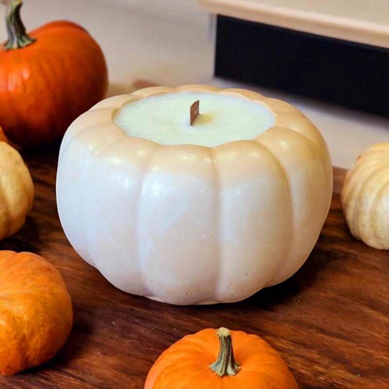 «осенняя теплота» - свеча в тыквенном кашпо, с ароматом ягодный микс