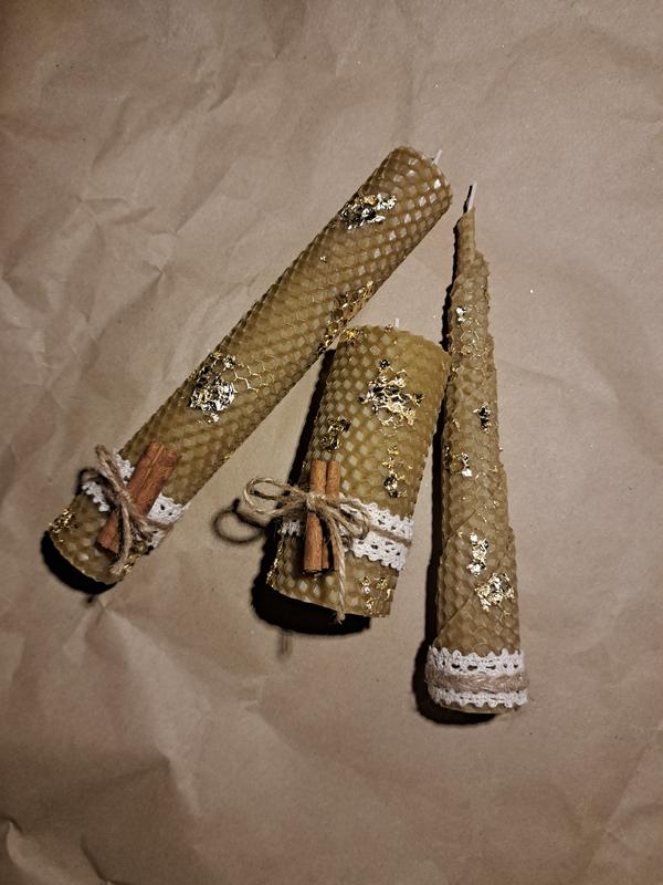 🍯 Эксклюзивный Медовый Набор "Зимний Уют" Этот волшебный сет создан из натурального пчелиного воска, имеет неповторимую текстуру медовых сот и состоит из трех свечей: Две элегантные цилиндрические свечи. Очаровательная конусная свеча-елочка 🎄, которая мгновенно создаст праздничное настроение! Каждая свеча бережно украшена: 💡 В эти времена, когда свет может внезапно исчезнуть, наши свечи станут не только отличным декором, но и незаменимым источником уюта и спокойствия. Это идеальный подарок для родных и близких, прекрасное украшение для вашего дома на Рождественстве и Новогодние праздники, и просто приятный способ порадовать себя и свой глаз, подарив свет и тепло в темные вечера. 💰 Стоимость данного эксклюзивного набора: 200 грн. Пусть в вашем доме всегда будет свет и уют!