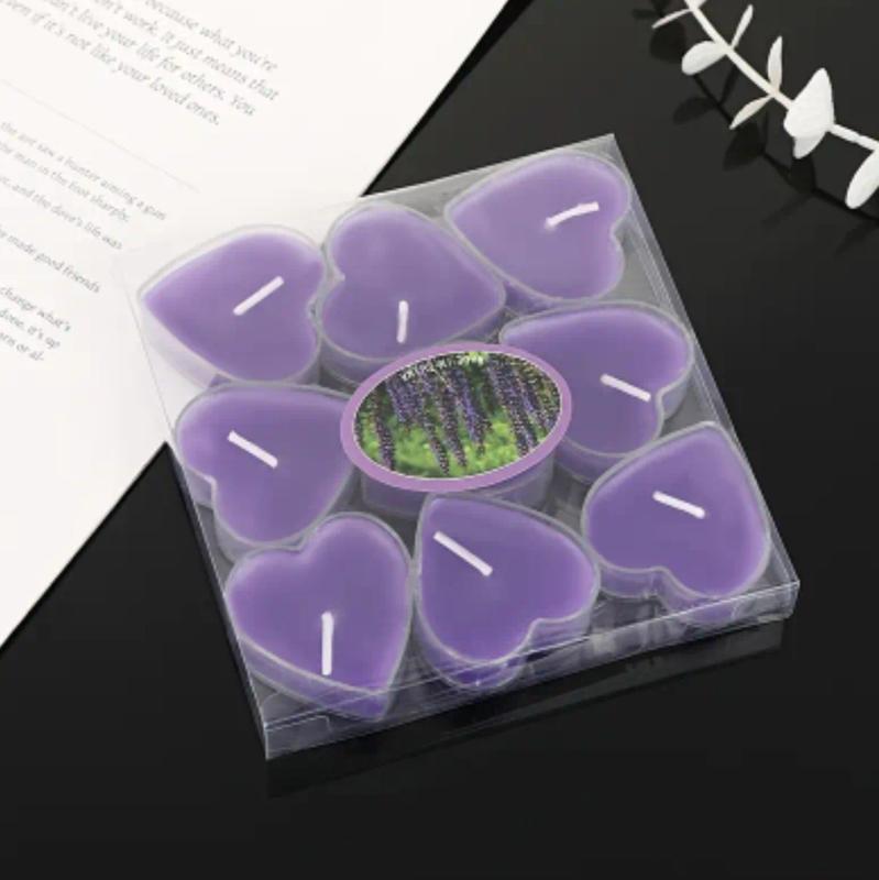 Набор свечей в форме сердца (9 шт.) фиолетовый
