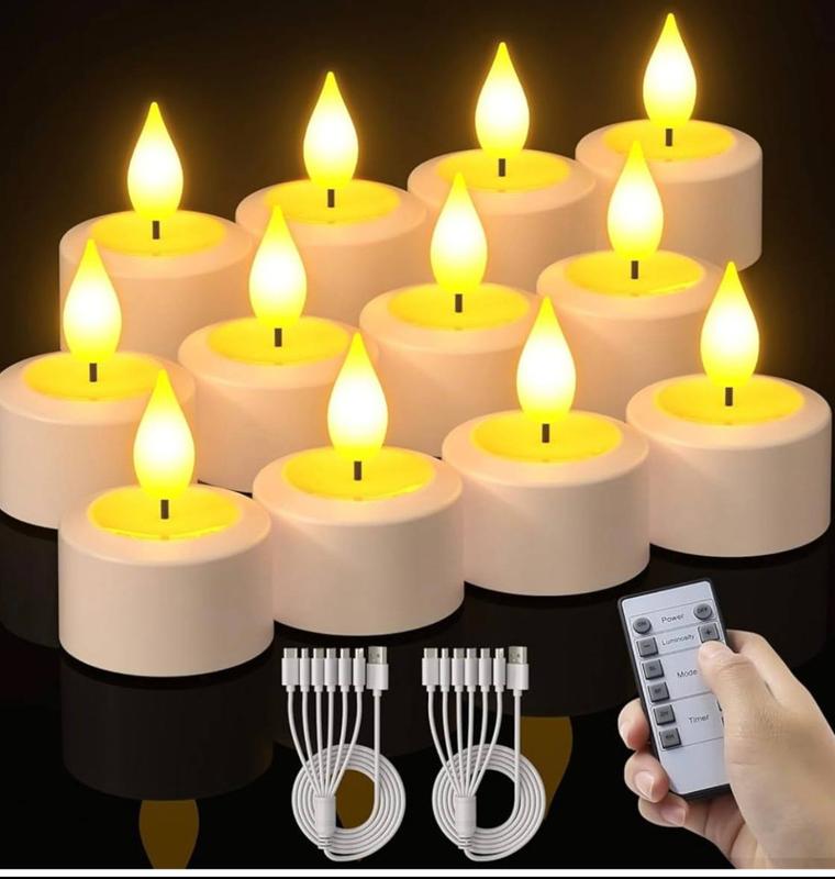 12шт Rechargeable LED свечей PChero с пультом и таймером — аккумуляторные светодиодные чайные свечи с дистанционным управлением и таймером для декора Хэллоуин/Рождество