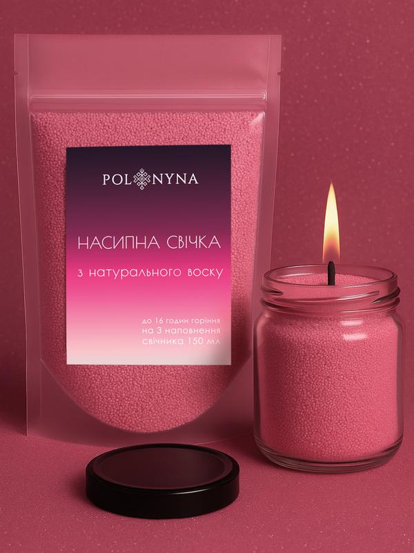 Насыпная свеча в баночке из пальмового воска розовая без аромата, с фитилем и держателем н...