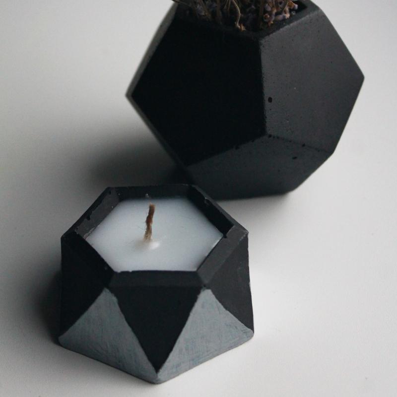 Свеча в подсвечнике 🖤 Форма создана вручную из бетона. Размер: 7*3 см Скидка на наборы. Когда свеча закончится, просто помойте бетонную емкость в мыльной теплой воде и используйте как подсвечник.