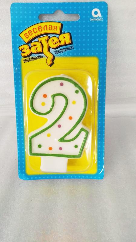 Декоративное украшение стола. Свеча в форме цифры "2". Отличное решение для декорирования торта, десерта ко дню рождения или юбилею. Экологически чистый состав, оригинальный дизайн. Высота свечи 7,6 см.