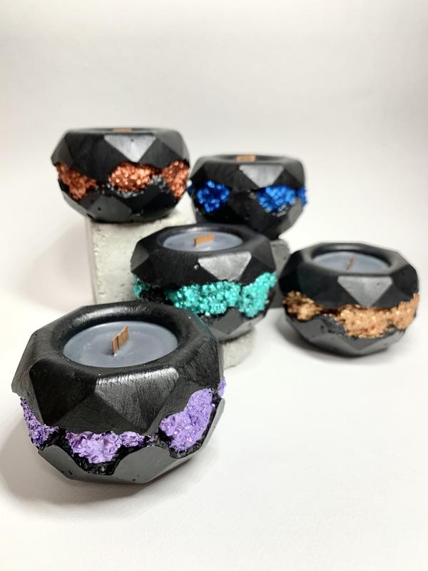Свічки соєві, соевый воск с деревянным фитилем, свечи в бетоне
