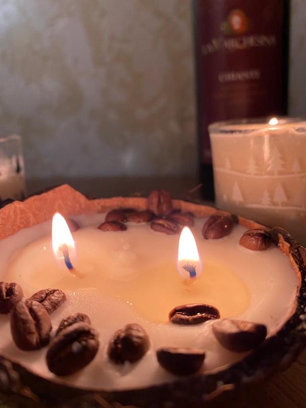 Свічка в кокосі🥥виготовлена з соєвого воску. Можна виготовити на 1 та 2 фітілі. Фітіль є хлопковий та дерев‘яний (з потріскуючим ефектом). Також можна додати декор за Вашим смаком. Термін виготовлення -2 дні.