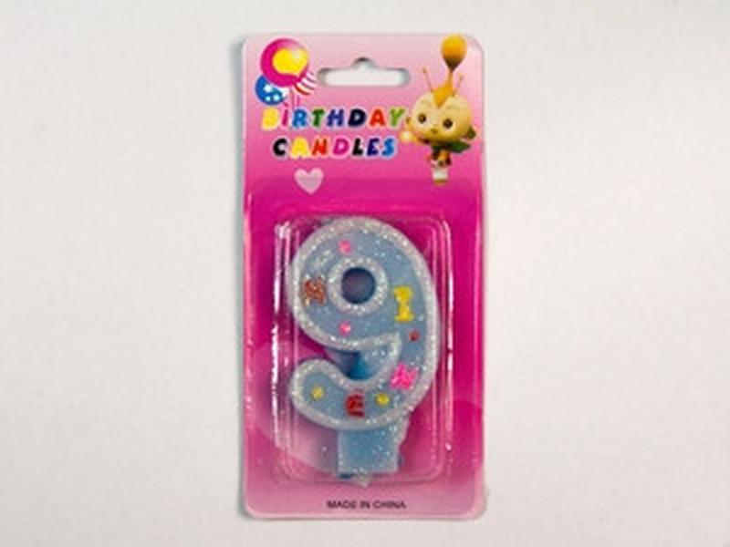 Свеча в торт цифра 9 голубая / свеча в торт цифра 9 голубая 7x3x1 см