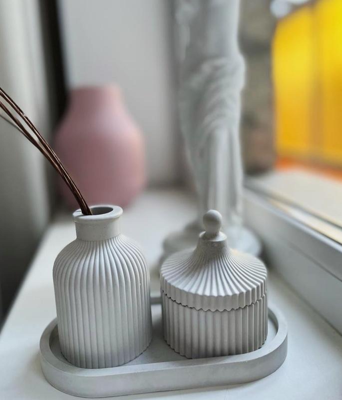 Ваза декоративна из гипса . Настоящая находка для перфекциониста и минималиста. Украсит ваш интерьер, идеально подходит для сухоцветов. Размеры : высота 10 см диаметр 6.8 см , горлышко 2.1 см Цвет белый Овальная подставка из гипса. Украсит ваш интерьер, послужит для украшений , косметики, свечей, аксессуаров. Размеры : длинна 17.5 см ширина 9 см борт 0.5 см Цвет белый Шкатулка из гипса. подходит для хранения бижутерии и небольших украшений\ предметов. прекрасной подойдёт для украшения интерьера , так же в качестве предмета фотосессии. размеры : высота 9см , ширина 8 см, высота без крышки 3.5 см Цвета : белый Цвет изделия может немного отличаться от фото