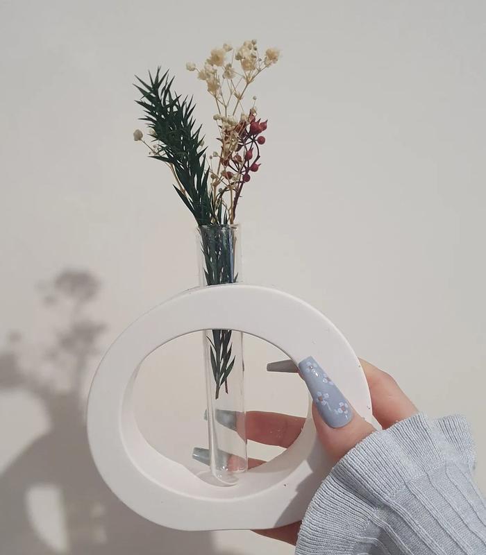 Ваза в стиле минимализм. Прекрасная деталь интерьера. Если ты любишь эстетику и предпочитаешь минимализм. Ваза подойдёт в качестве подарка . Украсит собой любое пространство. Идеальное сочетание с сухоцветами и живыми цветами. цена вазы без колбы 140 грн колба +30 грн Высота основания 11 см Ширина основания 13 см Цвет : белый