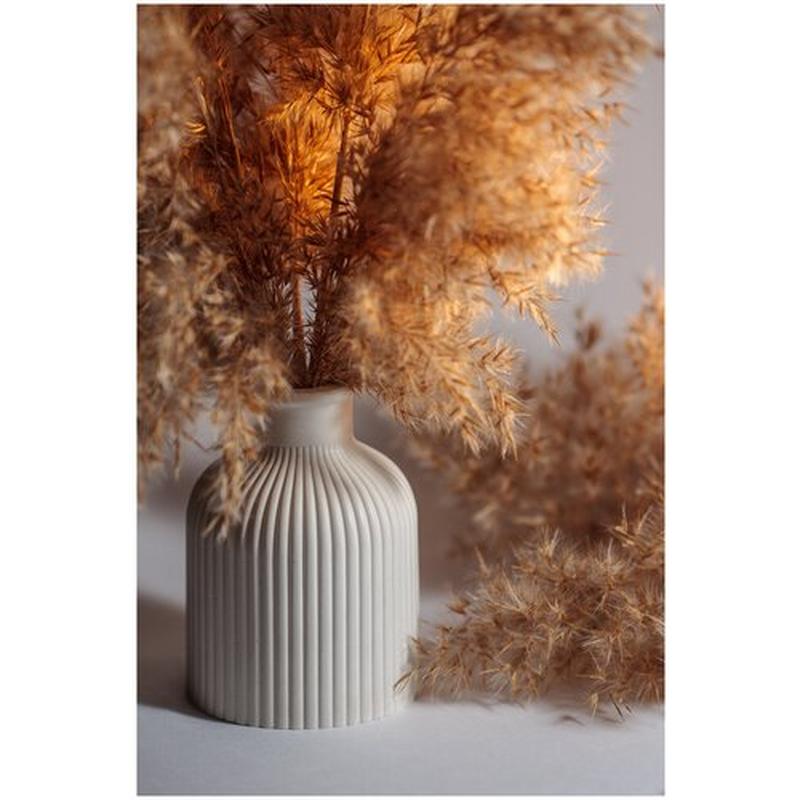 Ваза декоративна из гипса . Настоящая находка для перфекциониста и минималиста. Украсит ваш интерьер, идеально подходит для сухоцветов. Размеры : высота 10 см диаметр 6.8 см , горлышко 2.1 см Цвет белый Цвет изделия может немного отличаться от фото