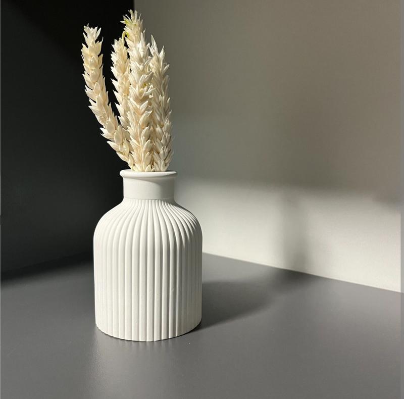 Ваза декоративна из гипса . Настоящая находка для перфекциониста и минималиста. Украсит ваш интерьер, идеально подходит для сухоцветов. Размеры : высота 10 см диаметр 6.8 см , горлышко 2.1 см Цвет белый Цвет изделия может немного отличаться от фото