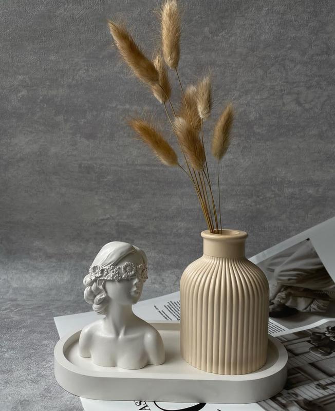 Ваза декоративна из гипса . Настоящая находка для перфекциониста и минималиста. Украсит ваш интерьер, идеально подходит для сухоцветов. Размеры : высота 10 см диаметр 6.8 см , горлышко 2.1 см Цвет бежевый Цвет изделия может немного отличаться от фото