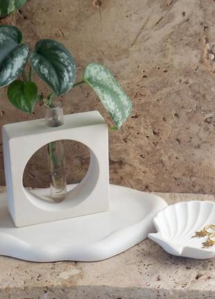 Ваза в стиле минимализм квадратная . Прекрасная деталь интерьера. Если ты любишь эстетику и предпочитаешь минимализм. Ваза подойдёт в качестве подарка . Украсит собой любое пространство. Идеальное сочетание с сухоцветами и живыми цветами. Материал гипс. цена вазы без колбы 165 грн колба +35 грн Высота основания 11 см Ширина основания 11 см Цвет : белый