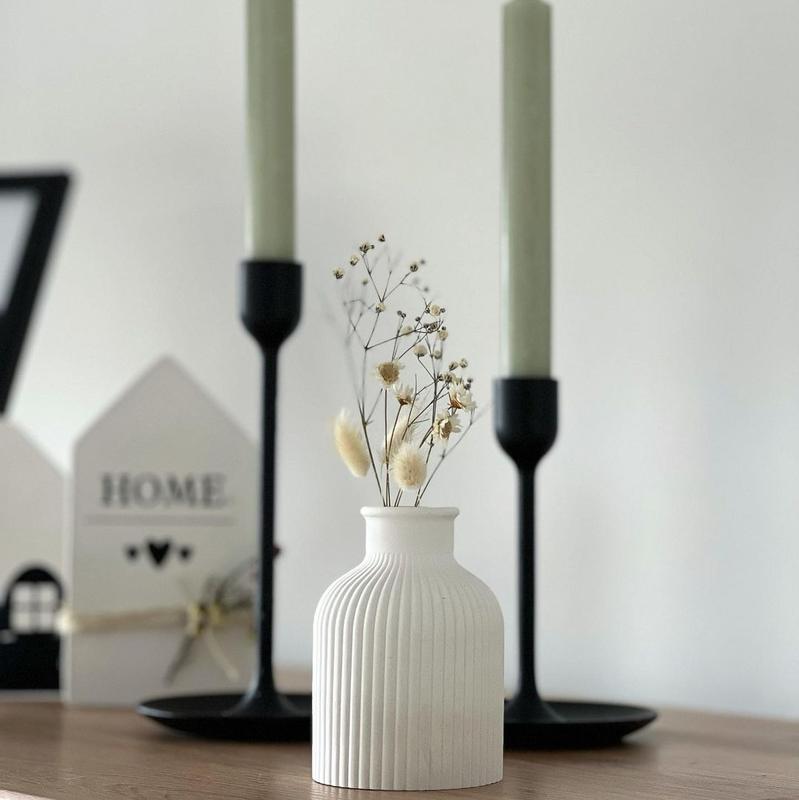 Ваза декоративна из гипса . Настоящая находка для перфекциониста и минималиста. Украсит ваш интерьер, идеально подходит для сухоцветов. Размеры : высота 10 см диаметр 6.8 см , горлышко 2.1 см Цвет белый Цвет изделия может немного отличаться от фото