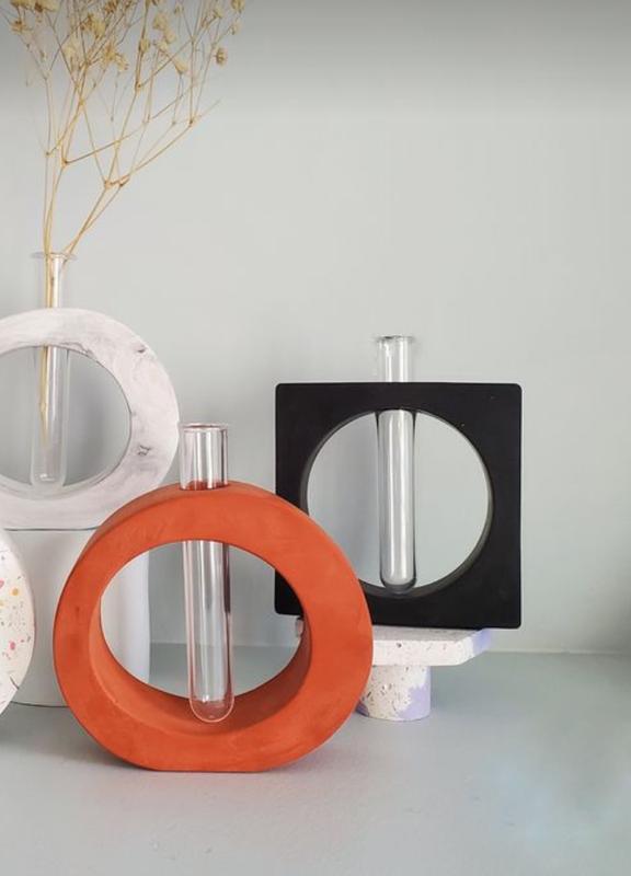 Ваза в стилі мінімалізм. Прекрасна деталь інтер'єру. Якщо ти любиш естетику та віддаєш перевагу мінімалізму. Ваза підійде як подарунок. Прикрасить собою будь-який простір. Ідеальне поєднання із сухоцвітами та живими кольорами. Матеріал високоміцний гіпс. Ваза кругла ціна вази без колби 180 грн колба +35 грн Висота основи 11 см Ширина основи 13 см Колір: жовтогарячий Ваза квадратна ціна вази без колби 180 грн колба +35 грн Висота основи 11 см Ширина основи 11 см Колір: чорний
