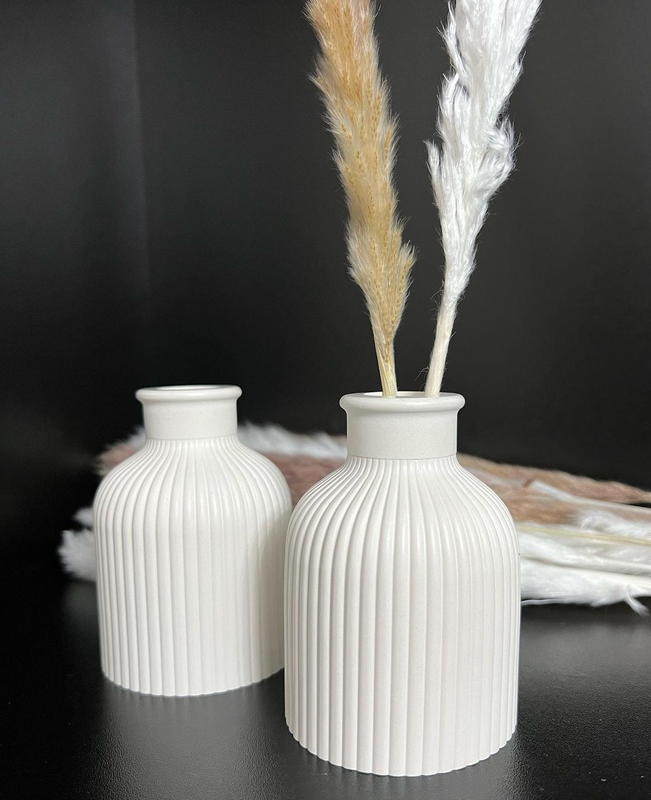 Ваза декоративна из гипса . Настоящая находка для перфекциониста и минималиста. Украсит ваш интерьер, идеально подходит для сухоцветов. Размеры : высота 10 см диаметр 6.8 см , горлышко 2.1 см Цвет белый Цвет изделия может немного отличаться от фото