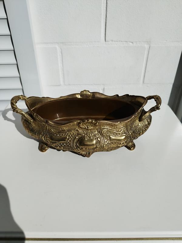 Роскошная жардиньерка в стиле Людовика XIV, Франция, середина 20-го века, винтаж. Великолепное литье с рельефным орнаментом, бронза. Жардиньерка оснащена пластмассовой емкостью-поддоном. Выглядит очень эффектно и привлекательно. Для живых искусственных цветов и оригинальных цветочных композиций. Также может быть использован как каминный, настольный, декоративный вазы, вазы-конфетницы, шкатулки для хранения бижутерии, всевозможных мелочей и др. Отличное состояние.
