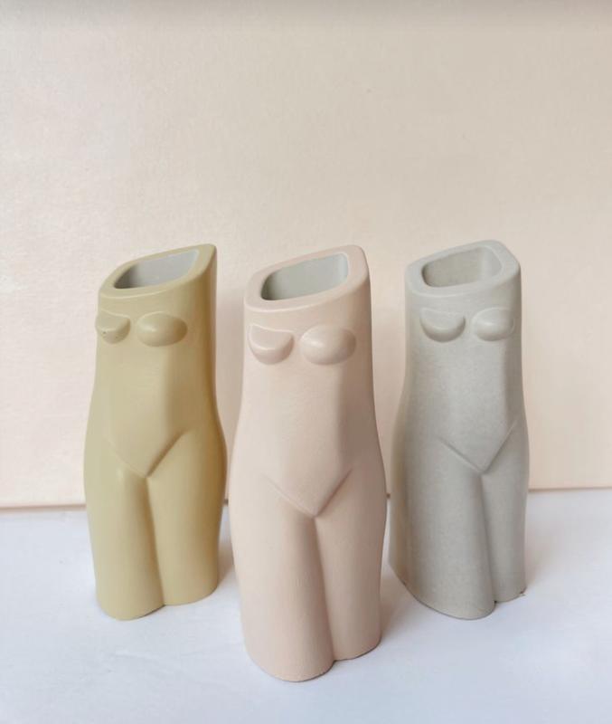 Ваза декоративная из гипса . Настоящая находка для перфекциониста и минималиста. Украсит ваш интерьер, идеально подходит для сухоцветов. Размеры : высота 13 см, диаметр 6 см , глубина 10 см Цвет : розовый, серый , горчичный Цвет изделия может немного отличаться от фото