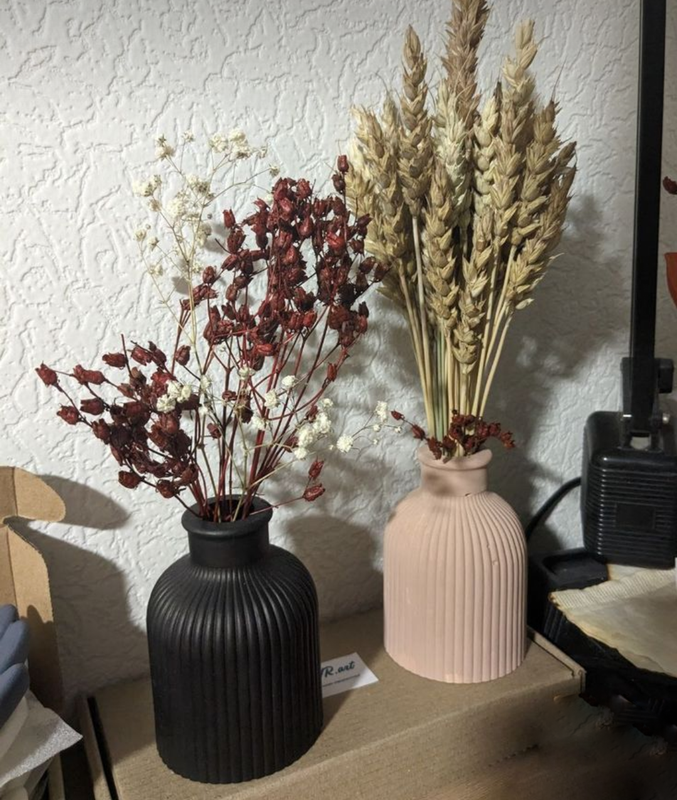 Ваза декоративна из гипса . Настоящая находка для перфекциониста и минималиста. Украсит ваш интерьер, идеально подходит для сухоцветов. Размеры : высота 10 см диаметр 6.8 см , горлышко 2.1 см Цвет: бежевый, черный Цвет изделия может немного отличаться от фото