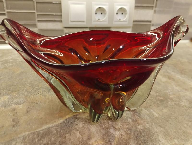Фруктовница, конфета из резистого стекла (рубиновый цвет) Винтаж. Фруктовница, конфета из резистого стекла (рубиновый цвет) Винтаж. Довжина – 22,5 см. Ширина - 14 см. Висота – 11 см. Красива. Стан идеален. Оригинальный предмет интерьера. Высококачественная ручная работа. Производство Чехословатчина 1960-1970 года? SKLO_FTUCTOVNV_0010