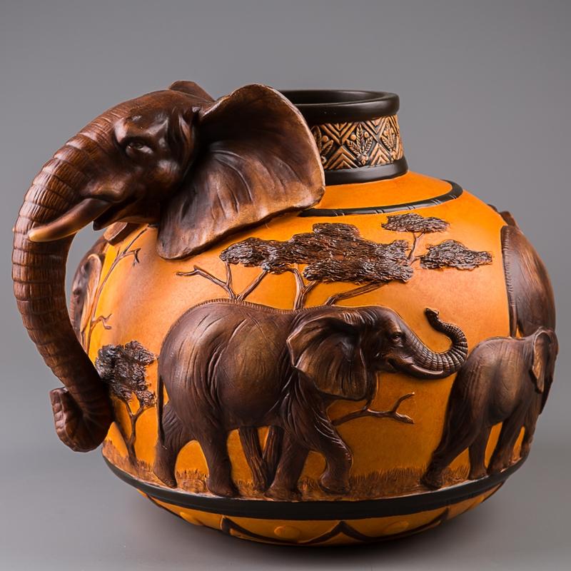 Ваза «Слон» символизирует собой умеренность, сочувствие, вечность и Персидскую власть. Этот подарок займет почетное место и в доме дорогих родителей, и в офисе справедливой начальницы, директора. Изделие изготовлено из полостуна (искусственный камень), покрыто напылением из бронзы; и упаковано в подарочную коробку, что придает ему престижность и роскошь. Благодаря надежной упаковке, изготовленной из пенопласта с углублениями для самых маленьких деталей, Вы можете быть уверенными в безопасности при транспортировке. Ваза декоративная, не предназначена для наполнения водой.