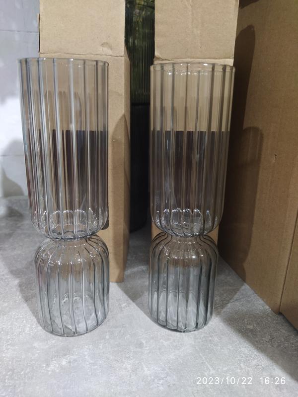 Вазочки для цветов, современное стекло. Высота 16 см. Устойчивая, хрупкая, не легкая. По наличию : 6шт серого цвета 1 шт розового цвета 2 шт зеленого цвета